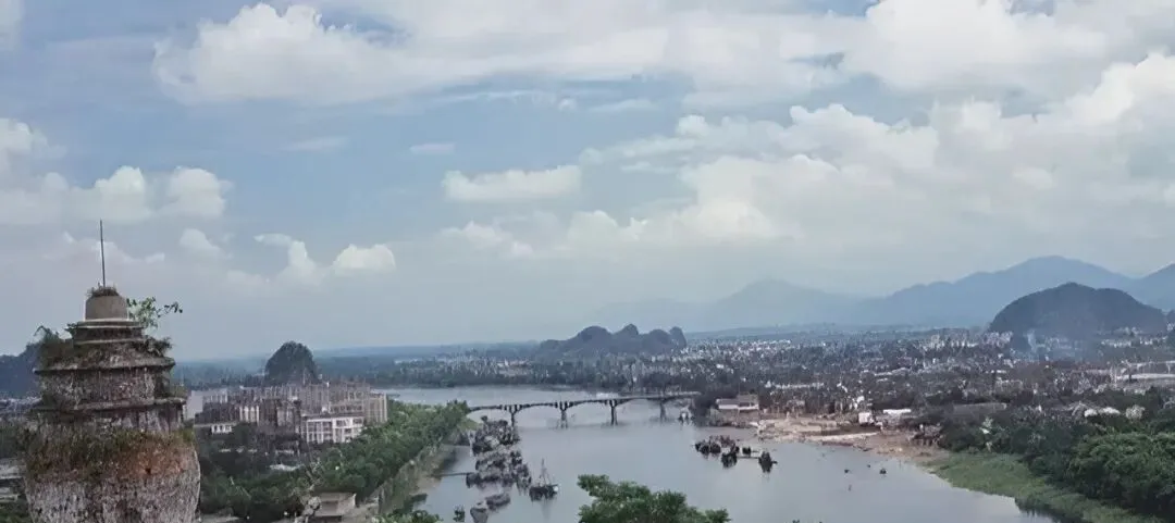 到了这一块,有的说三步一水五步一山可不是假的,江水转过城角,挤满了泊在岸边的船,远处一座塔静静立着,天高远,这一派大气都写在洁白的云下头了,你说当时的桂林没啥花活,但看一眼就记下,没人舍得拉开目光。