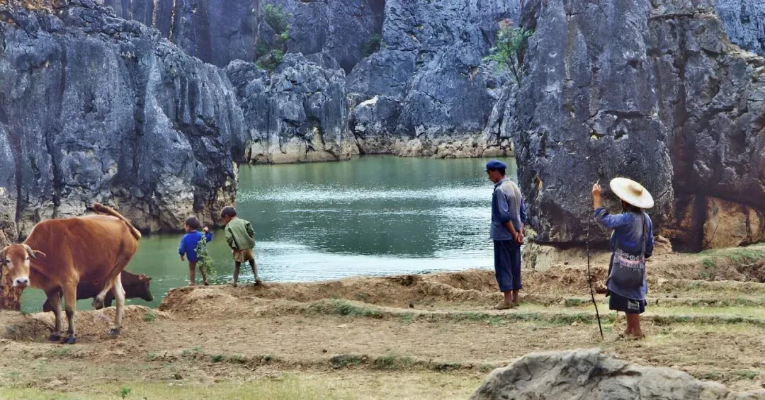 图里田野一看就熟悉,孩子牵着牛,牛跟着人绕着走,背后是壮年人递着吃食,一手拎着羊鞭,妈妈有时候喊别跑远了,全靠嗓门大,娱乐可没现在多,家家娃都是顺路玩顺路回,电视手机都还没啥声音的时候,野地里的探险天天不停。