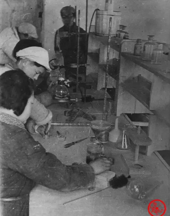 图上火苗窜得旺,一男一女正各自忙着,她们专心把玻璃棒对着酒精灯微微加热,双手不停转着,火苗下试管发出亮光,过一会儿就成功接上一节,手上只要一抖活就废了,但看神情全是游刃有余,那会儿材料紧张,每根玻璃都得算着用,做出来的不一定完美,能用就行,不光是技能,更是一种生存智慧,现在的实验室条件一路好到天上,早些年简直是拼命省着点。