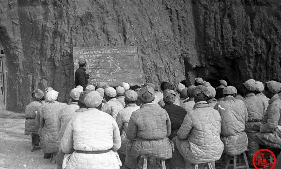 老照片:抗战时期延安大学生在艰苦条件下学习,上课无人打盹