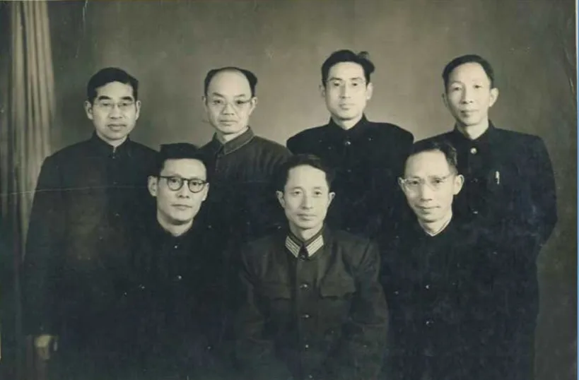 这张照片拍摄于1960年炮兵工程学院成立不久,聚齐了学校兵器学科专业的创始人程尔康、鲍廷钰、浦发、肖学忠、赵子立、许哨子、张宇建。他们目光坚定,神情坚毅,中年时刻,躬逢盛世,干事创业,正逢其时。1960年合并建院时,学校轻武器专业的创始人之一程尔康(前排中)任步兵兵器(轻武器)教研室主任,1962年初步兵兵器专业调出时,程尔康同时调至解放军后勤工程学院;1978年8月,炮兵技术学院在合肥成立,学校57位骨干教师调入支援,赵子立(后排左二)也随之调入合肥炮院。(前排左起)鲍廷钰,程尔康,浦发;(后排左起)肖学忠,赵子立,许哨子,张宇建