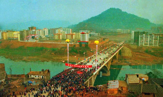 图里这座桥叫三号桥,新修好的时候可风光了,桥还没完全连通前后,就是两边还是光秃秃的黄泥巴,堤坝边杂草跟着水气茂盛一大片,人都习惯踩着坑坑洼洼的土路来回,有人穿着解放鞋,儿童的小脚丫也不怕烂泥粘,九十年代那阵子,桥一开工,镇上大半人都提着篮子出来看热闹,妈妈边看边说,以后她上学走这桥应该方便多了,桥头一字排开的摊贩卖瓜子糖油果子,热闹得很,三号桥成了大家说风水都要绕一圈的地标,后来两头兴盛起来,变成巴人广场、草坝街,谁能想到现在逛街喝奶茶的地方,以前全是泥水和人气。