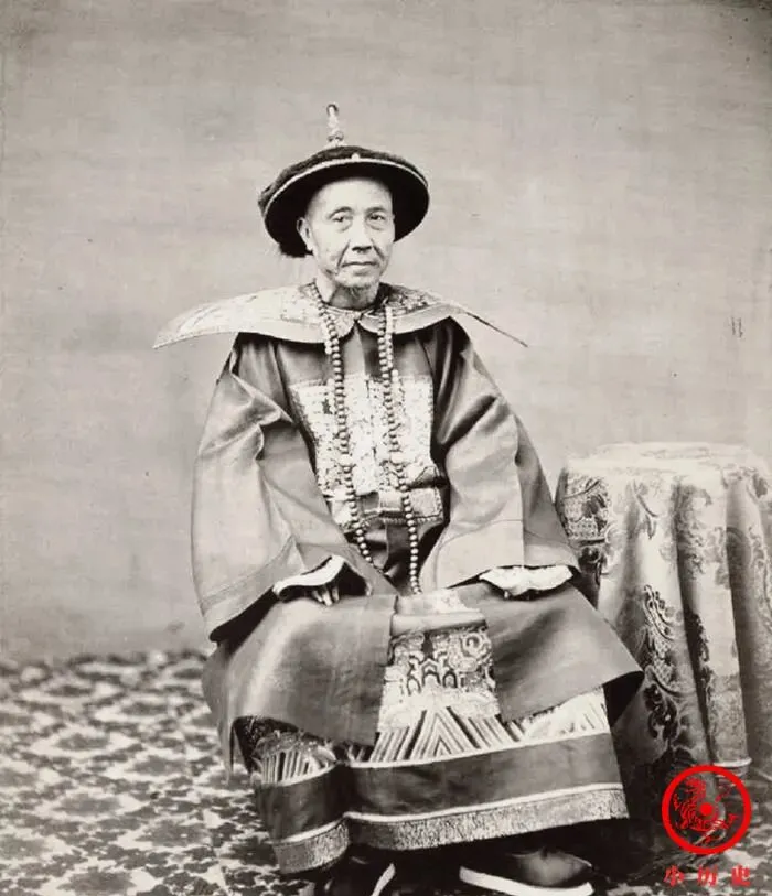 这个穿官服盘腿而坐,是劳崇光,两广总督的官服穿得格外板正,手背在袖里,脸色里透着一丝精明,他上任那几年,正好是乱世,靠着开捐养团练、跟太平军你来我往好几场硬仗,老家老人说他会用人、肯下力气,能纠合各地士绅把阵脚稳住,那股精细劲儿,比年轻人想象里要厉害多了。