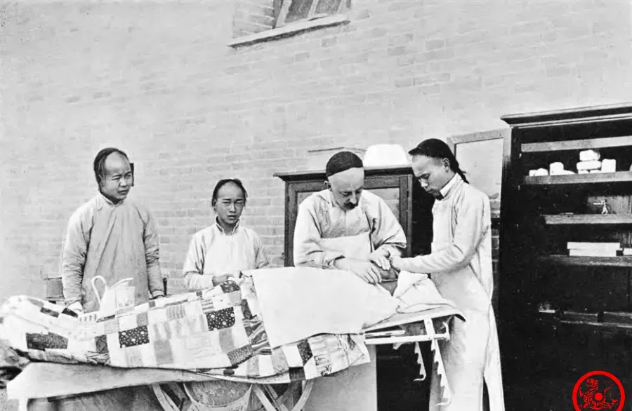 图中那桌子边站着几个,主刀医生眉目清楚,是个老外,穿着长衫马褂,头发留了辫子,手底一杂,气氛特安静,妈妈说那会儿做手术可不容易,屋里没影儿灯,就是搬个棉被铺上就治病,病号一躺下就全指着大夫手稳了,亲戚要是住院,都得一家子陪着守夜,谁家有个能做大夫的,走哪都能抬头,不比现在楼下门诊一排排,谁也记不住大夫名字。