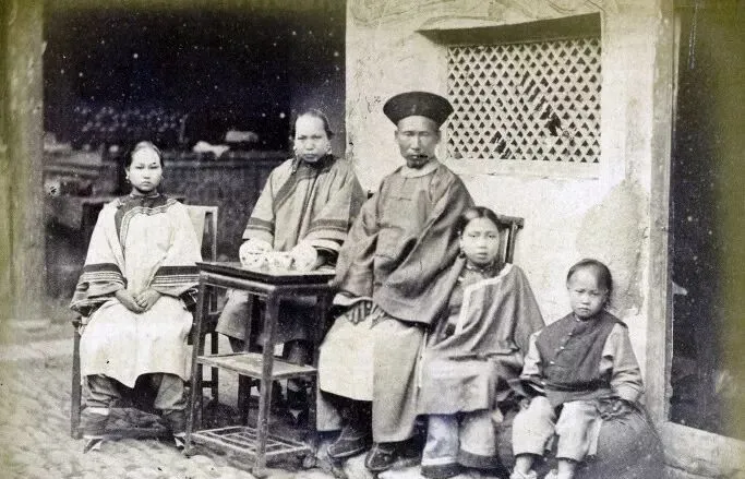官员家的全家福都拍得讲究,一大家子围坐,人人正襟危坐,桌上瓷器,女眷穿绸缎,男主人戴着派头最大的帽子,连门窗都是特地刷过的,奶奶说,以前合家照一次得排好阵,孩子不敢动,媳妇得把衣服捋平,笑也不敢笑太开,当时能拍全家照的,肯定家底子厚实。