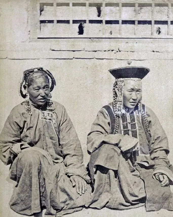 这俩内蒙古妇女,头发盘成花样,发角缠着银饰珠串,节日礼服厚重得很,一坐地上裙摆铺了一片,那地儿阳光硬,衣服颜色特扎眼,耳边铃铛碰在一起哐啷哐啷响,平常时穿不出来,只有节日或大事才拿出箱底的好货来招待客人。