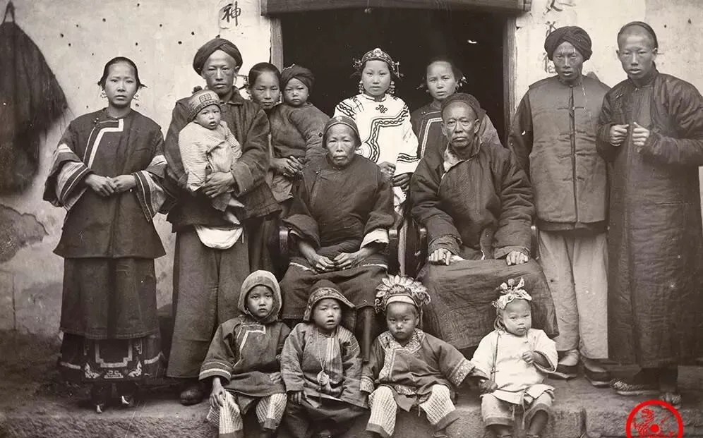 老照片里这一大家子挤满门口,三代同堂的景象是真正刻在老一辈心底的牵绊,最上头的老太太和老爷子坐在正当中,腿边围着孙子孙女,小丫头脑袋上别着花绒头饰,大人穿的长衫布衣,一个个神情拘谨又新鲜,