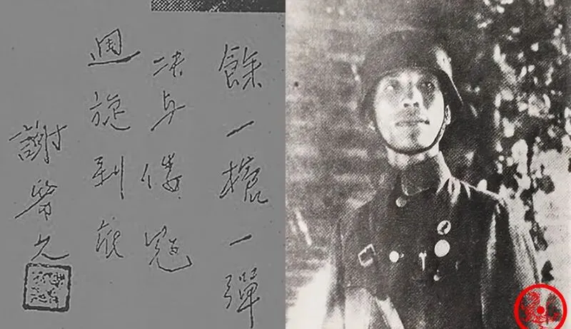 左边一行字,是谢晋元留下的手迹,“余一枪一弹,誓与倭寇周旋到底”,右边是人穿着戎装,两排勋章清清楚楚,挺胸抬头,眼神又直又硬。每次翻起老相册,这一页家里都要念叨一句,人死名留,字迹还在,照片里的他还是那么硬