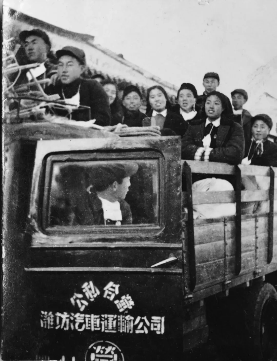 1956年县吕剧团赴莱阳拥军演出路上