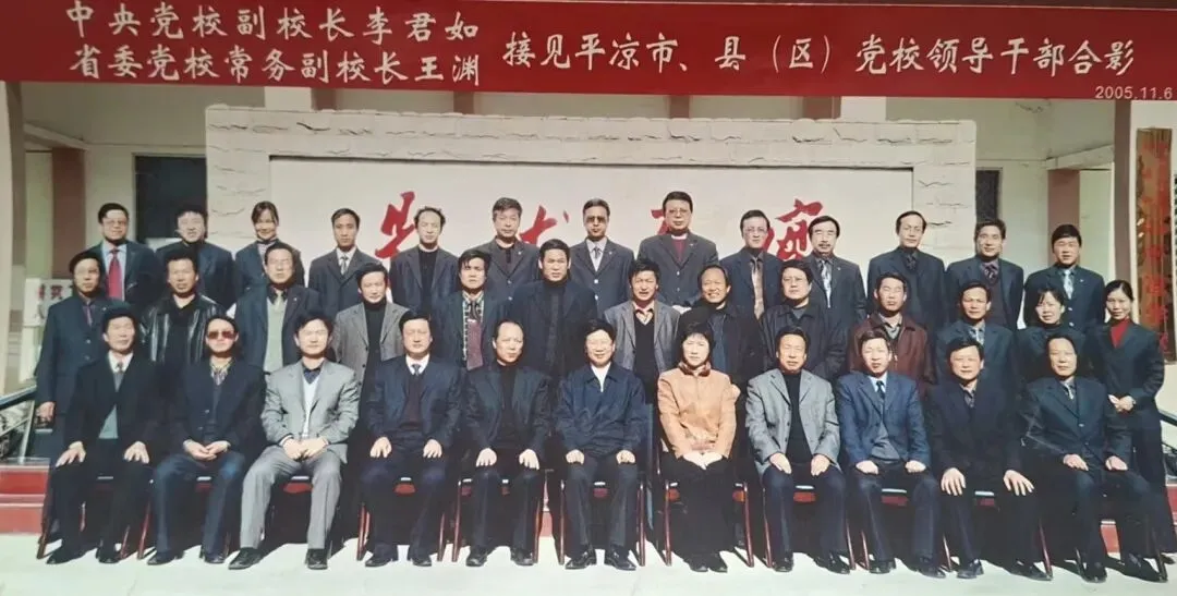 翻开泛黄的相册,一张定格在2005年11月5日的合影,静静诉说着平凉市委党校历史上一段难忘的故事。照片里,中央党校副校长李君如、中共甘肃省委党校常务副校长王渊一行四人,与市县两级党校科级以上干部并肩坐而立,笑容质朴,透着一种难得的荣光。这张看似普通的合影,承载着党校人难以忘怀的记忆,更是1949年建校以来,中央、省级党校领导同时莅临视察的历史见证。