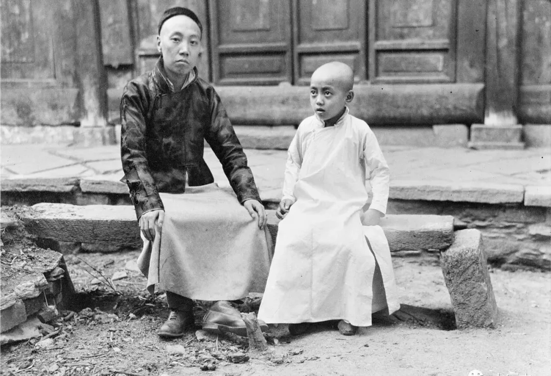 最后这位俊秀男人和小孩端正坐着,父子二人穿得体面,衣料一看就不是寻常土布,气质和神情都透着“世家”俩字,爷爷以前在县里说经常瞅见这种有身份的人家,出门带长随,有的还裹了帽子,脚踏皮鞋,家底厚实的才敢穿得这样齐整,诸事都爱讲究规矩。