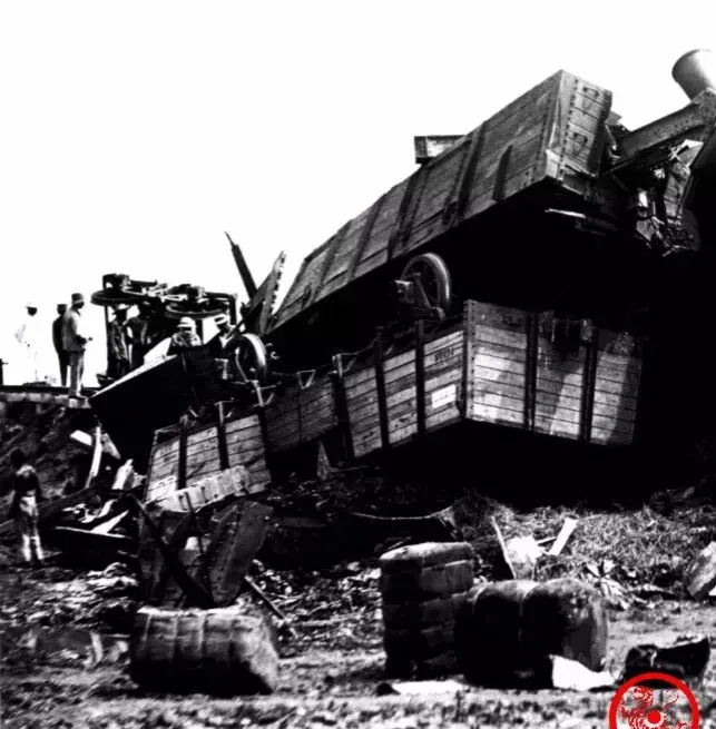 图里的巨大黑疙瘩就是当年的火车头,整个侧翻在泥坡上,铁轮子歪着,像踩空了一脚,旁边一圈人,有的指着,有的光顾着挤,地上横七竖八的木箱子,火车蒸汽管还扭成了麻花,那气味不用凑近都能想出来,铁锈、烧焦和泥土混一起,啥叫乱成一锅粥,拍下来就是这个模样,小时候听爷爷讲,那会儿火车刚通人气没跟上,出点啥状况大家也就都愣,凑热闹的劲儿比害怕还大。