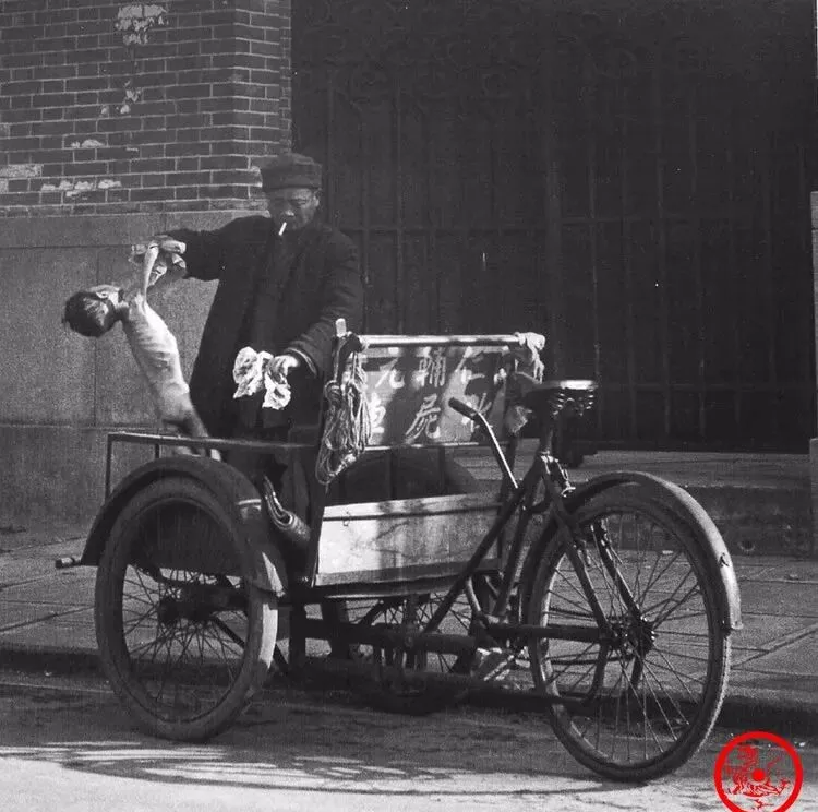 画面里老头叼着烟卷,一手拎着个小孩身子,三轮车上随便搭着块破布,木牌子写着“收尸”,这活当年算是见不得光的行当,可要没人干,城里街头巷尾都得是尸臭味道,收尸人天天转着,朝头搬,晌午搬,头上风吹日晒不敢停,谁家倒了霉听见拖走的声音,心里都要哆嗦几下。