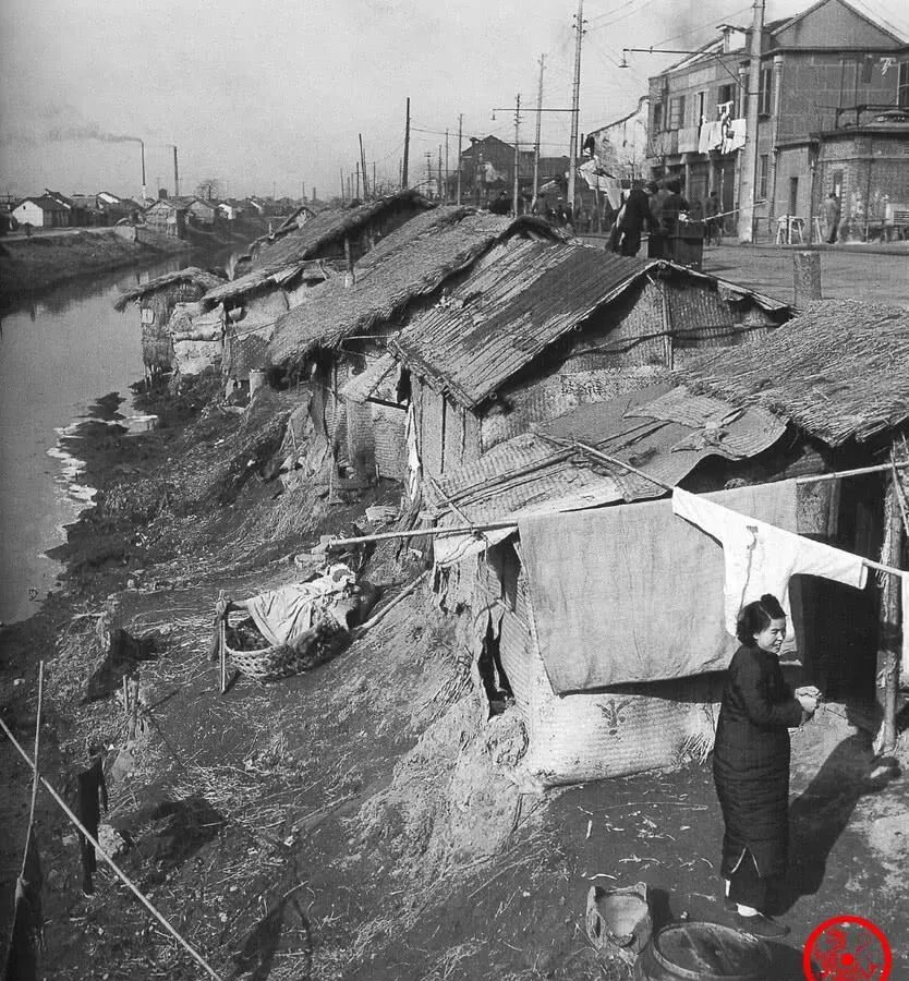 这些茅草顶的棚屋,一溜沿着河堤搭起来,屋顶压块石头怕风刮走,破布满天晾着,女人在门口洗衣,脚下全是泥巴和水沟,河里飘的是什么垃圾都不敢细瞧,这种地方晚上冷得人牙打架,冬天多的是一家子挤一块,就等着饿着睡过去,上海外面几年后高楼林立了,这些透风漏雨的家,再也看不见。