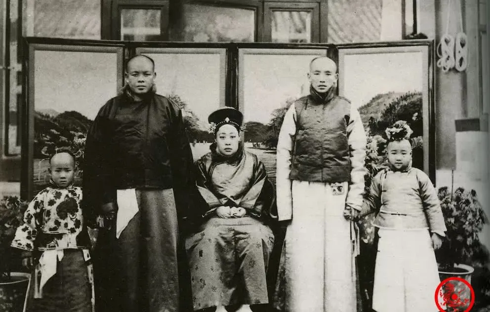 这一家子的照片,看着阵仗有点像过年,正中坐着的还是瑾妃,左右各站两位男子和俩小孩,服饰厚实,头发梳得贴,瑾妃坐姿端着,表情没啥变化,跟身边人仿佛隔了一堵墙,“妈,宫里一天什么滋味”,以前我一直问奶奶,她摆手笑说“皇妃也没几分自在,规矩比咸菜梗还难咬”,这张照片像用力摆出的团圆,实际心思隔着山一样远,真情外露的机会一点都没有。