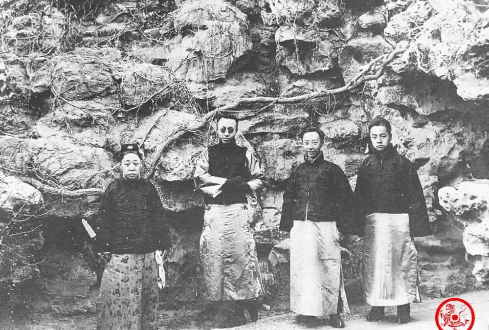 再看这张园林里的照片,瑾妃站左头,旁边是三位侍女或女官,山石做背景,衣裳颜色压得暗,大家的脸都没什么笑意,四周的山石纠结成一团,跟人心思差不多,那石缝里也许能藏住几句宫里的风声吧,“这宫墙里最多的就是绊脚的疙瘩”,奶奶有时候这么念叨,看来一点不假,站这么一会也挺累。