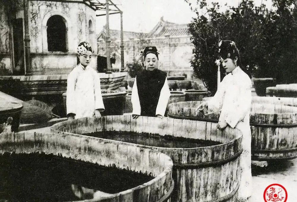 最后这张可有意思,几个穿着宫装的女人围着大木缸,里头估摸着养得是鱼,瑾妃沉着脸看着水面,两边的姑娘也不敢吭声,这种大缸在宫里可不稀罕,关键是逛到哪眼神都难有生气,日子过成这样,连池里的鱼儿都要溜到暗处吐吐泡儿,小时候出去玩,奶奶常说“自由是最难得的”,这会儿看这照片真信了,后宫金缕衣再多,也暖不热这满满的孤单。