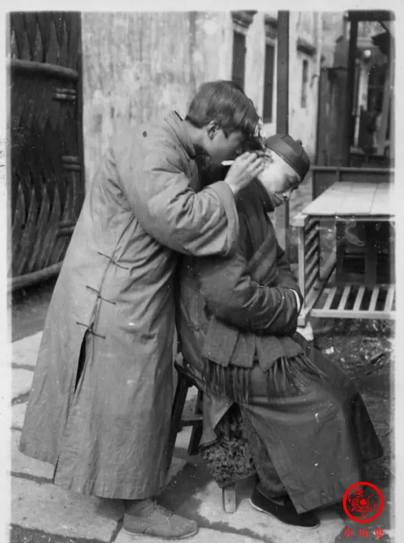 这个新鲜活叫采耳,照片里年轻人头埋得低低的,蹲在长袍老者背后,小钩子一点点探进耳朵里头,周围静得能听见自己的呼吸。那时上海街头有不少这样的手艺人,一根竹柄配铁丝弯钩,左一拨右一转,痒得让你缩脖子又舍不得动,老一辈觉得,偶尔采耳能清净头脑,活着更“利索”些。我小时候在巷尾看过一次,大人说老法子干净安全,只要手稳眼明,采完耳朵后整个人精神了。