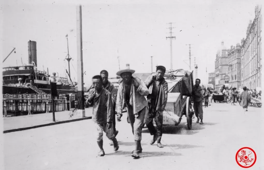 照片里这帮拉货的苦力,肩上扛着沉重的轱辘大车,脚步正对着黄浦江的太阳,褴褛长衫黏着汗水,也舍不得停下歇气。有人嘴里叼着草根,有人皱着眉埋头往前顶,不用多说,江边这些人日日靠力气谋口饭吃,收尾又得等到天黑。爷爷说他们有的家在乡下,有的就在棚户窝棚里住一地,平时嘴硬,收了工却手脚软得攥不稳筷。现在路口只剩下穿内胆布鞋的送快递小哥,力气还是力气,换了个模样继续用罢了。