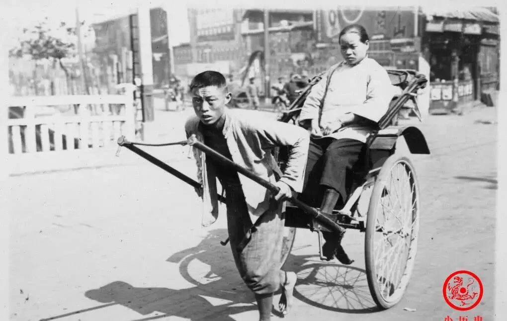 最叫人心酸的,还数这车夫一身青筋暴突的双腿,前头拉着人力车,脚下是裸着的,整个人把身子趴在杆上喘着气。乘客一身光鲜,车夫却只能低头认命,天晴雨雪照样奔跑,没人怜惜。爸常说,能跑车的都是家里无依无靠的光棍,一个铜板打一日饭钱,拉得多夜里还得交租。如今谁还坐人力车,四处都是出租电瓶车,日子翻了多少篇。