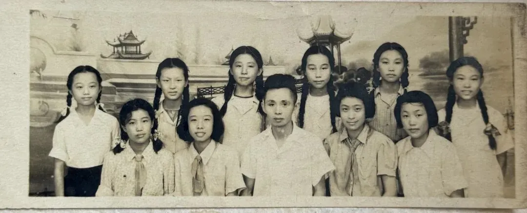 照片里的她(后右1),梳着整齐的长辨,穿着朴素的衣衫,眼神清澈,带着少年人的纯粹与朝气。