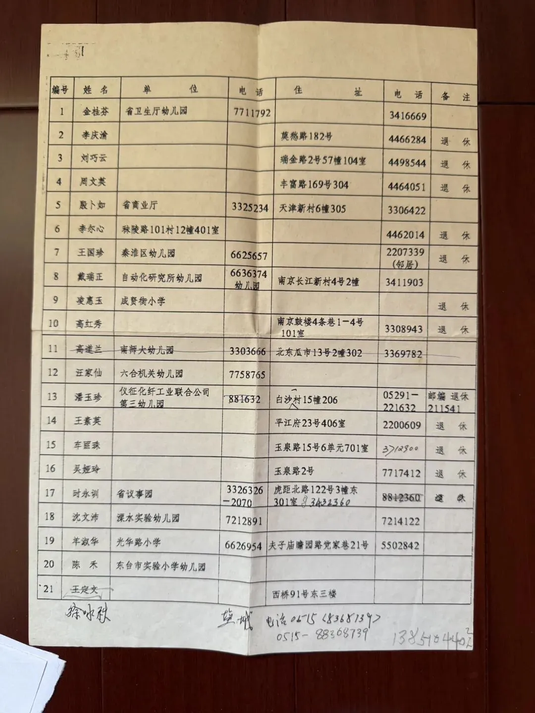 这张照片,是母亲与同窗们在90年代初整理的通讯录。