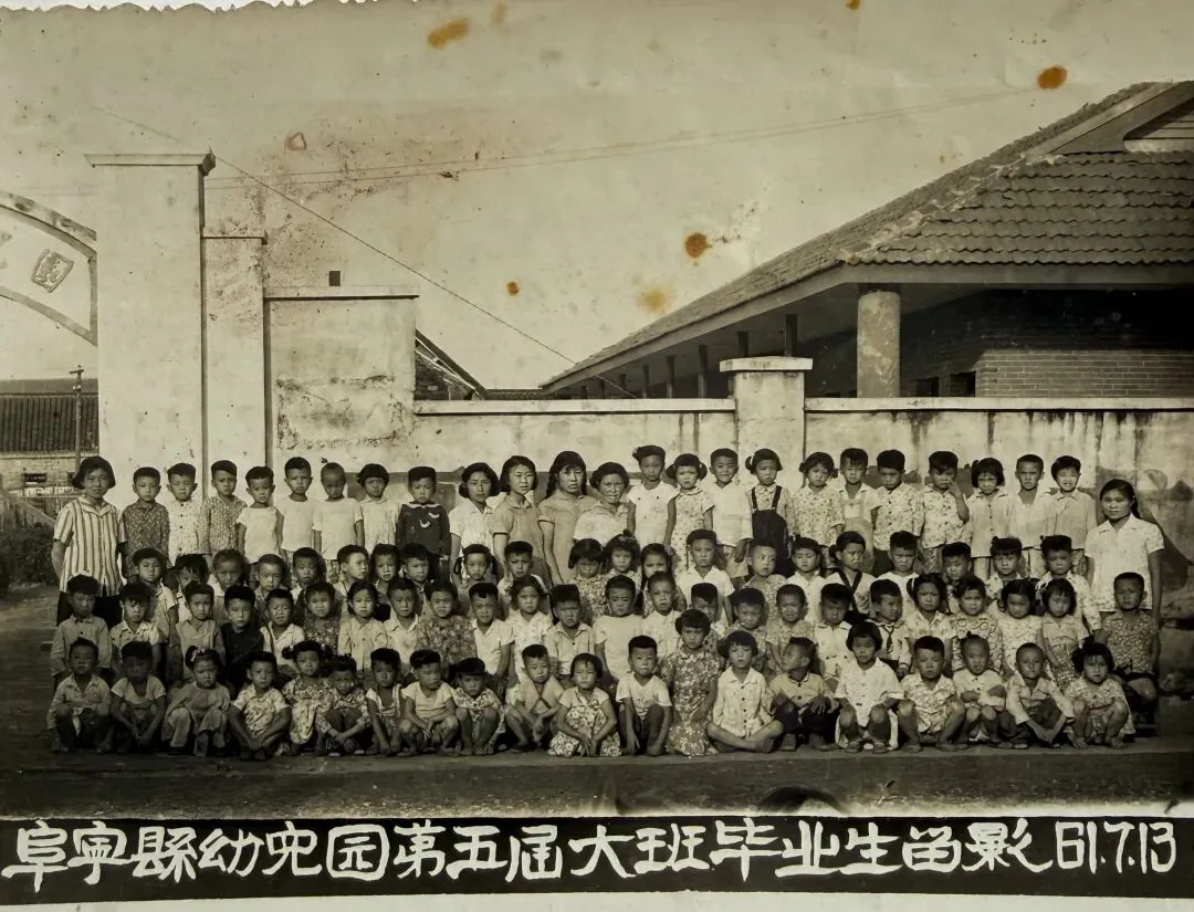 一张是1961年7月13日,阜宁县幼儿园第五届大班毕业生的合影;另一张是1962年7月6日,第六届大一班毕业生的留影。