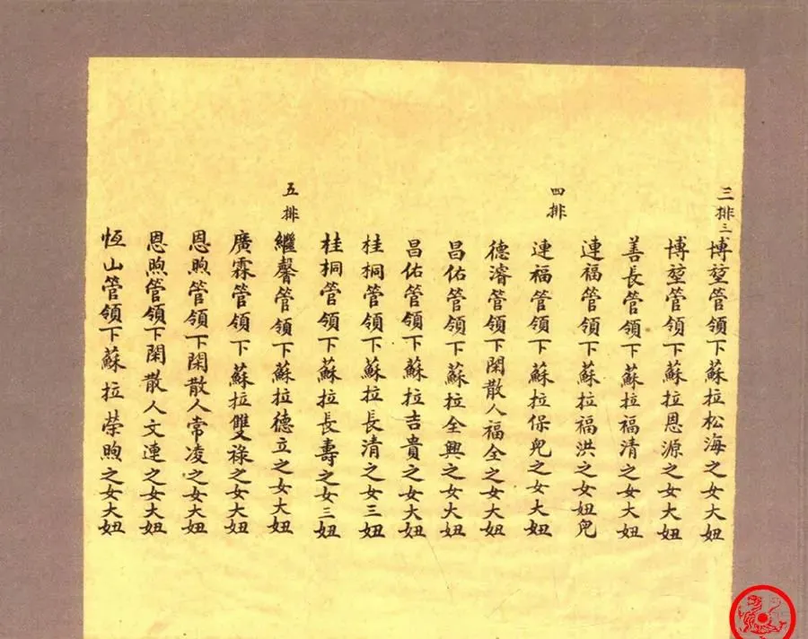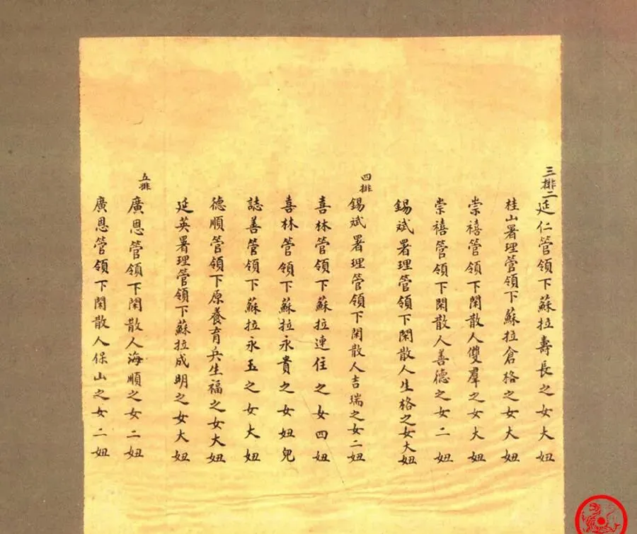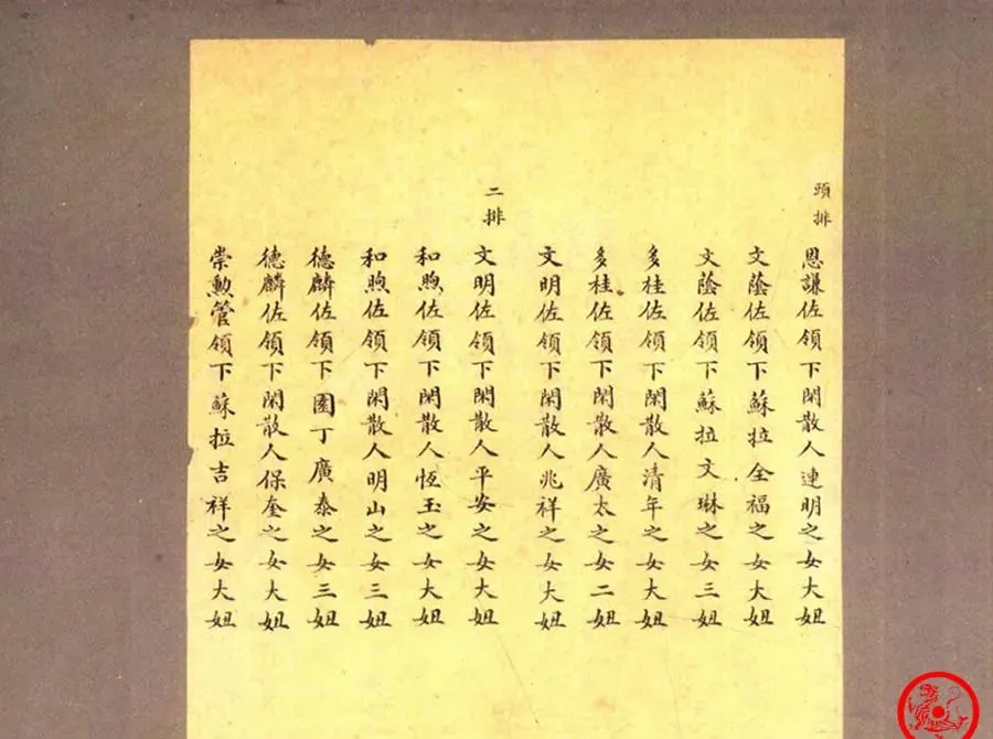 这张纸就是那一批秀女的名单,写得密密麻麻,名字齐刷刷排着,有的只叫“二妞”“大妞”,读起来单调得很,没什么花哨,小时候看这种字总觉得枯燥,长大了才明白,哪个名册后面都有人家的命运,很多名字一写完也就沉在档案里,再没人提起,左邻右舍谁家闺女榜上有名,估计能说上好一阵子,这种事过去就难再有了。
