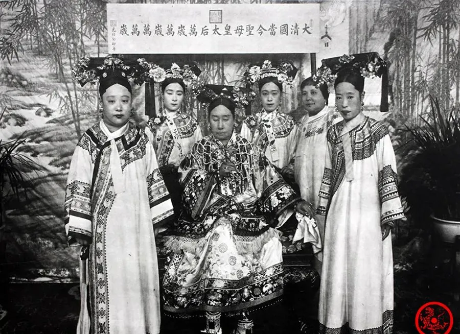 照片上正中坐的,是慈禧太后,两旁站着后妃,和秀女们比起来,这阵仗派头可大得多,清朝妃子的朝服上满是刺绣金线,头戴凤冠,排场足足的,细看脸,皇后和妃子都算不上漂亮,甚至有点严肃,从小耳朵里听老人说,后宫最讲身世和脾气,精致妆扮只是外头传说而已,真见到的,大多都这样素净,谁家媳妇谁知道。