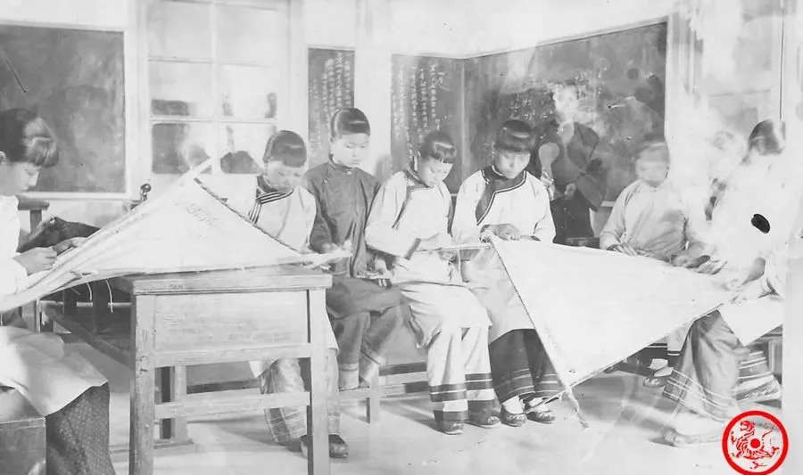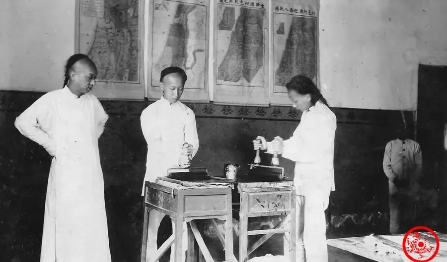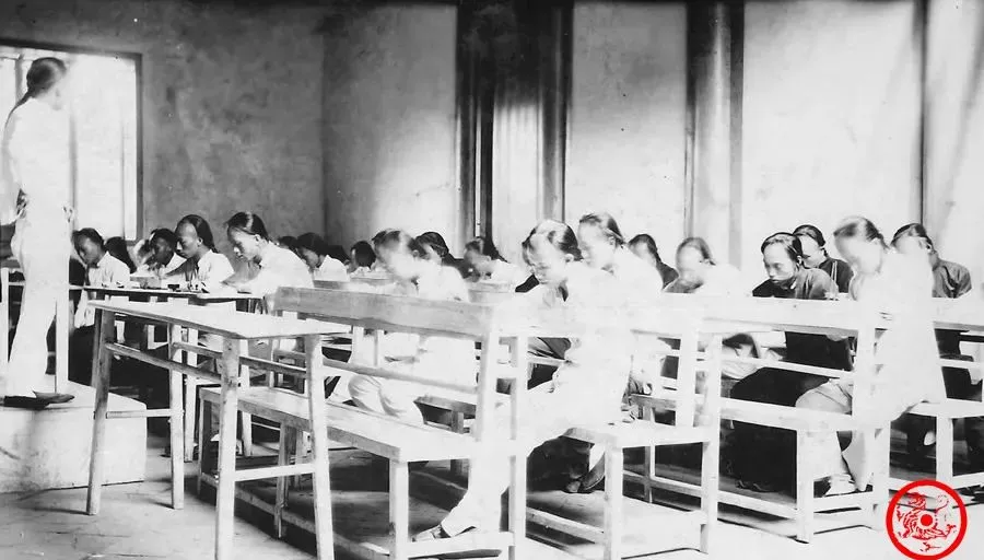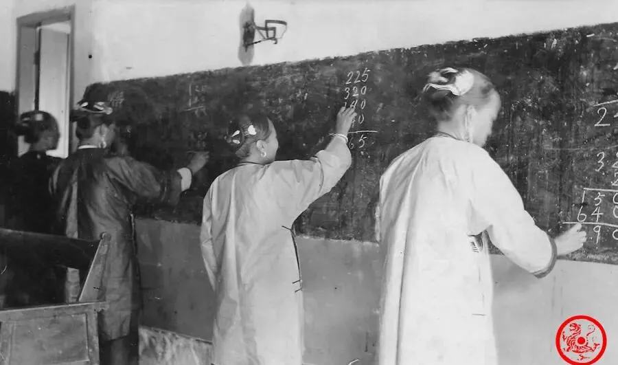 这几位女学生穿白衫,发辫垂到肩下,黑板上几道几何题干净利落,一个坐着答题,另一个站着准备轮换,先生在桌边用极低的嗓门催促,让她说出每一步,动作慢慢腾腾却紧张得很,那年头女孩子进学堂,可不许缠足,能自由活动奔跑,考试比男生还认真,家里父母不再鸡蛋里挑骨头能念书的那个开心劲儿,你现在问老一辈都能回忆起。