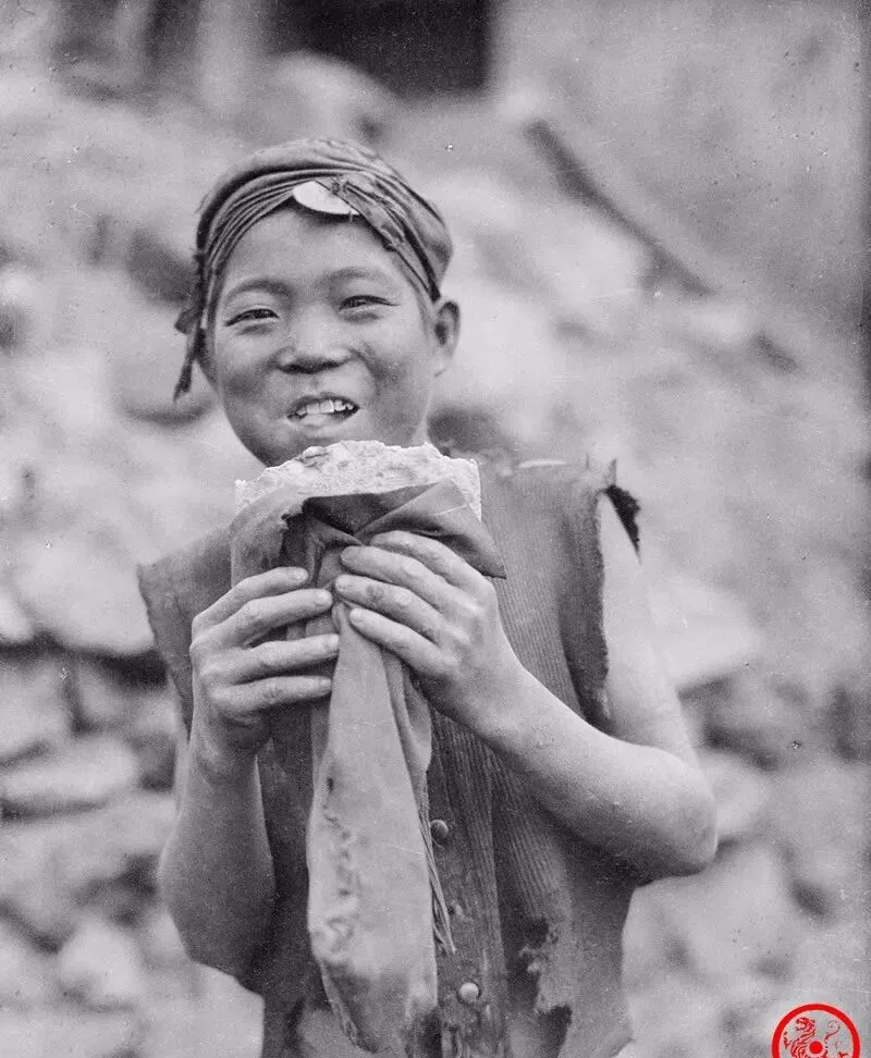 眼前的男孩一身破袄,头发糊得乱七八糟,攥着块干饼笑得露牙,身后全是石墙,一问才知道是煤矿的童工,小手黑得跟炭似的,拿到吃的就顾不上讲究,咬下去腮帮子鼓起来,小时候看大人口袋揣块窝头,午饭前总舍不得掏出来,这种饿着肚子的记忆,谁家都有。