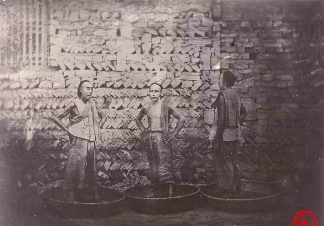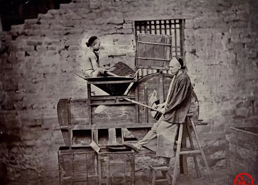 光绪元年老照片:俄国所摄茶叶生产全程,工人用脚踩茶