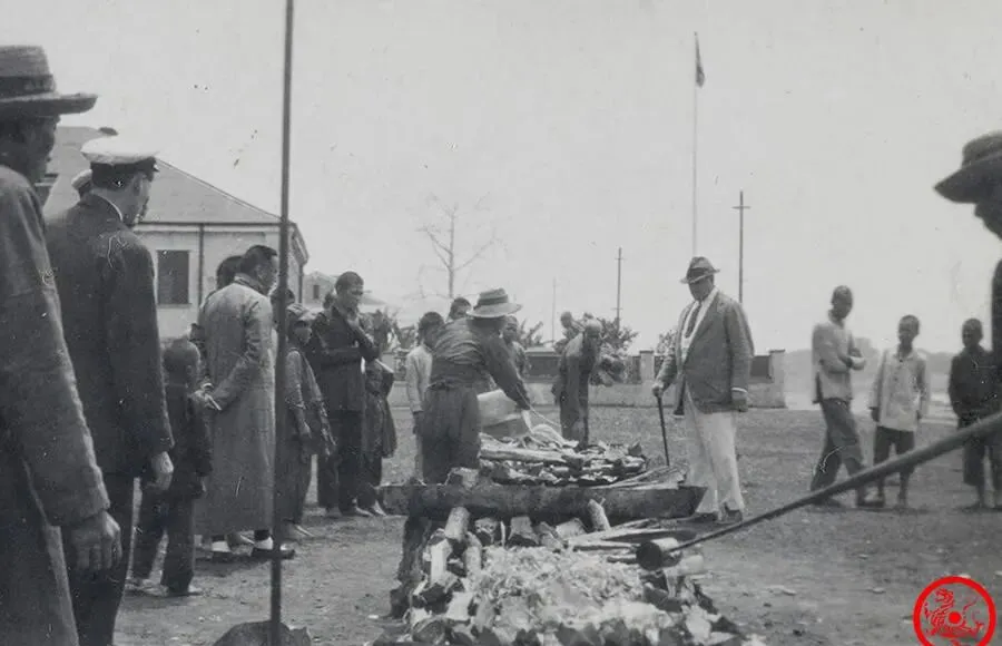 老照片:1920年销烟现场,鸦片焚毁令人痛快