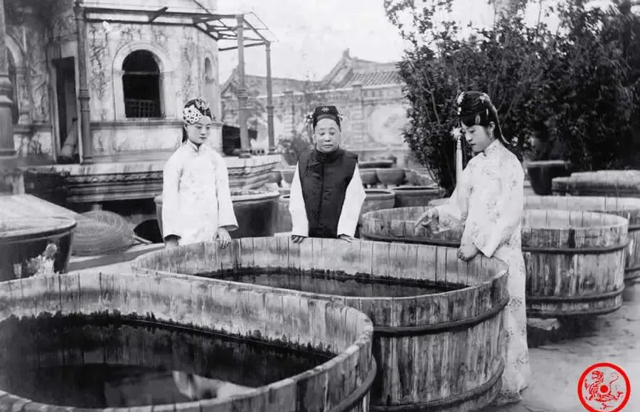 这一张是端康太妃和宫里几位主仆,三个人站在硕大的木质鱼缸旁边,眼睛顺着水面瞅过去,神色里多着点说不清的寂寞,那会儿深宫成了空壳子,主事的都进了历史书,留在里的只是每天绕着御花园打转的太妃太监,听说端康太妃自己开小灶,嘴巴刁,一天没几件正事,偶尔看个金鱼,也算日子里的小开心,“后宫没了争锋,连唠嗑都轻声细语,怕惊了院里的猫”。