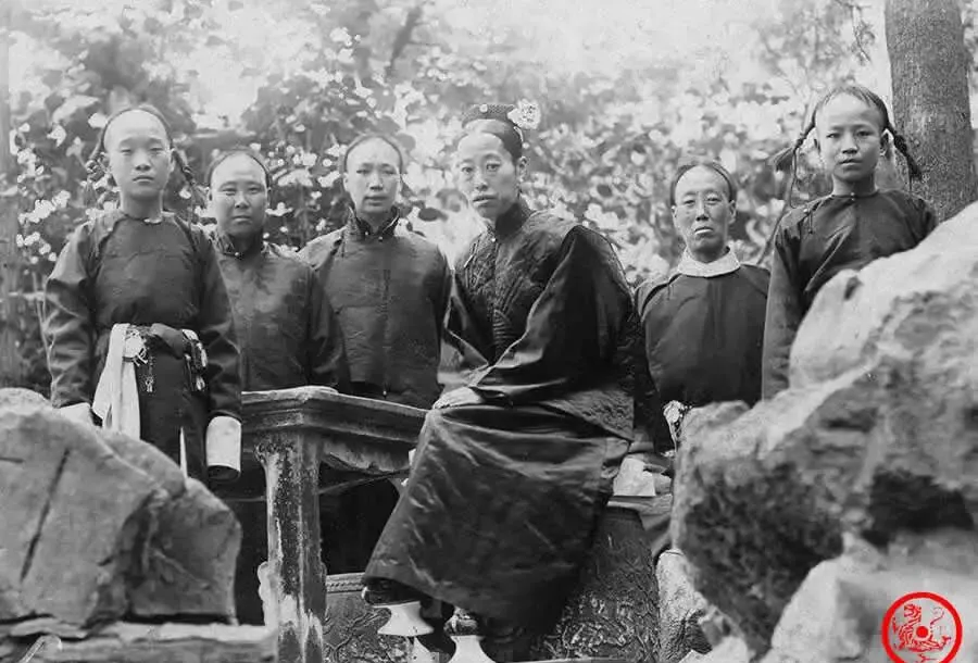 老照片:隆裕太后太监陪同游御花园,袁世凯姨太太现身
