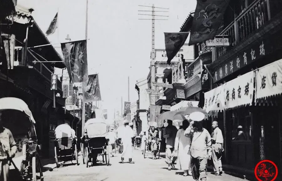 那时张勋带兵复辟,街头挂满了黄龙旗,照片里能看出来,一路商铺楼上飘着龙纹大旗,人力车穿梭、行人举着阳伞,太阳晒得人影都发白,那家黄龙旗店明显恢复了买卖,有好事的就拿报纸自己画个旗糊上门坊,爷爷说“别看挂出来像回事,那一年真有几家觉得天又要变了,结果龙旗没晾干又得收,闹剧一场,街上什么也没变”。