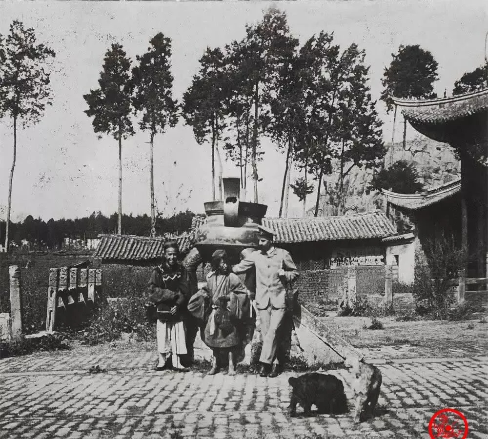 图中高高的石碑,专门立在大路边,是专门表彰清官的,左右零星小孩赤脚站着,法领事胳膊一伸,拍着仆人的肩膀,身边那两只狗毛色脏得厉害,却跟主人相看两不厌,有些照片里人穿的衣服松松垮垮,看着像没正形,其实全是为了遮丑保暖,衣袖太长就撩起来挽在臂弯上**,日头一大,狗都懒得动弹。
