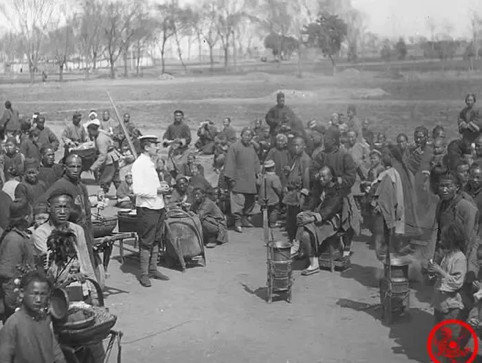 剃头担子地上一摆,直接就开工,锅灶冒热气,剃刀闪寒光,这才是老北京的百姓味道,现在大超市人也多,门口看不见这样一群摊主围圈子聊天,各自忙各自。