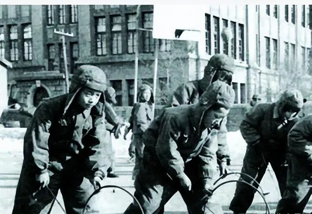 图中的这些孩子拎着铁环在马路牙子上跑,棉袄棉裤盖得严严实实,帽子歪着,铁环打在地上咣啷咣啷响,冬天路面带着点薄雪,一个个兴高采烈,推着玩意追着跑,铁环是瘦竹竿做的把手,打几圈能溜出一身汗,教室里听到声音都忍不住往外望,家里大人路过见了也不拦你,只摸摸头说小心别摔,那种简单的热闹,现在的孩子见到还得问一句怎么玩。