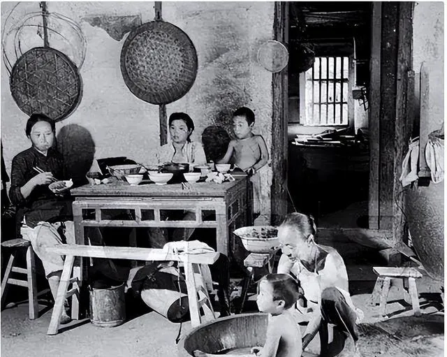 照片里的屋里大人孩子全都挤着,桌子凳子碗盆一样不缺,墙上挂着竹筛和大块的晒干蒜头,小孩在水盆里扑腾,奶奶一边帮着擦澡,妈妈拿着筷子就着咸菜夹一口饭,气氛就是热闹和亲切,谁也不觉得环境局促,小的时候家里条件不宽裕,吃饭洗澡全在一个地方办了也没人嫌麻烦,那种全家窝一起的小日子,如今回头看才格外想念。