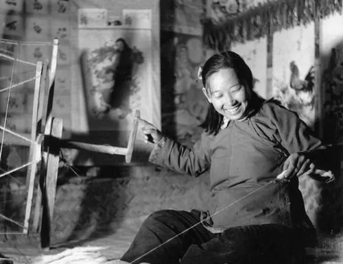 纺车是旧房间里最踏实的物件,木头手柄常年抹着油光,姑娘一边摇纺轮一边嘴角带笑,墙上贴的年画和这一笑全对起来,纺线织布这些手艺,女孩们都是从小看着学着,家里做鞋做被都少不了这一环,不是动手做点玩意就是帮着收线,日子总吵吵闹闹也就这么过来。