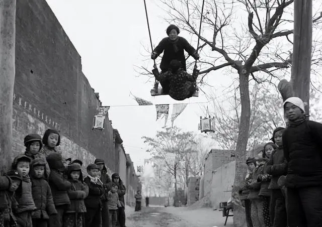 绳索挂在老槐树上,板子下的大人小孩全都抬着头看,秋千一荡半条街都沸腾了,墙头蹲着的孩子比上学还认真,一根绳一块板子,开心能晃一下午,那会没有游乐园,风大也舍不得回家,妈妈站树下嘴里还唠叨着“慢点”,心里其实比谁都乐。