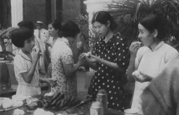 这群姑娘图上满满的都是旧时光的味道,档案标注说是北平沦陷后日本侨民暂避大使馆时的情景,一个个穿着印花裙衫,手里捏着团子,背后是一派青葱的树影,脸上说不上轻松,却带着点小心翼翼的安稳,大家都挤在一起,彼此说着些什么,气氛跟外头枪声格格不入。