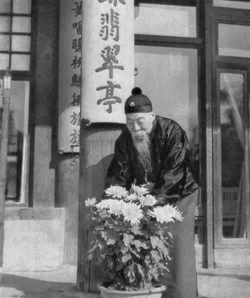 老北京的气息扑面而来,这位老者拈着花盆,门口悬着牌匾,留着胡子的架势一看就是地道的老头儿,那会儿外头烽烟四起,胡同深处总有人守着自家琐事,花开了就搬出来晒晒太阳,生活啊,临了也要一点颜色亮着,有人说这就是旧城的骨骼,打不垮。