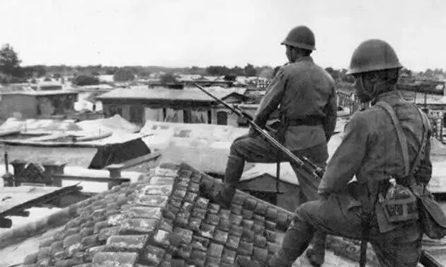 先别以为都是大场面,这种屋顶边上的两个日本兵,动作就透着一股猫腰的精细,端着枪的姿势看不出在笑还是在皱眉,街道像棋盘那样摊开,屋顶瓦当上印着阳光,一站一天,膝盖都得发烫,小时候爷爷说过,日本兵围城时爬到屋顶,白天守着,夜里轮流躲枪,普通人家门都不敢开。