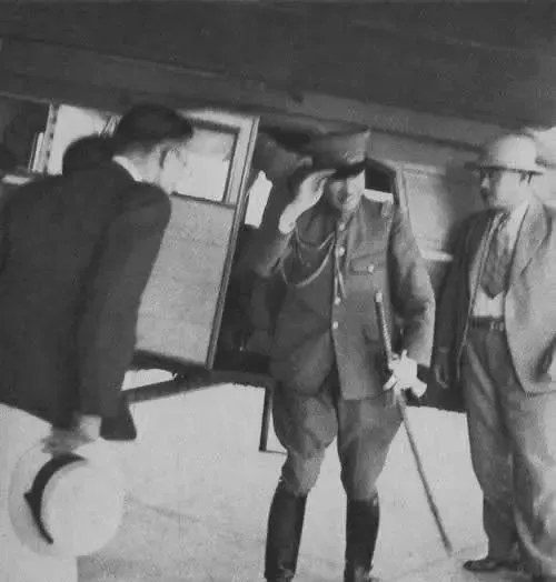 图中这个刚下飞机的日本高级军官,一只手扶帽檐,另一只手还拄着拐杖,机场边上人三三两两跟着迎接,阳光正足,影子拉得老长,这架势就是风头怎么紧都不能乱了阵脚,骨头夹得硬邦邦,家父说那时候只要见着穿长靴军帽的,背后总有事儿要发生。