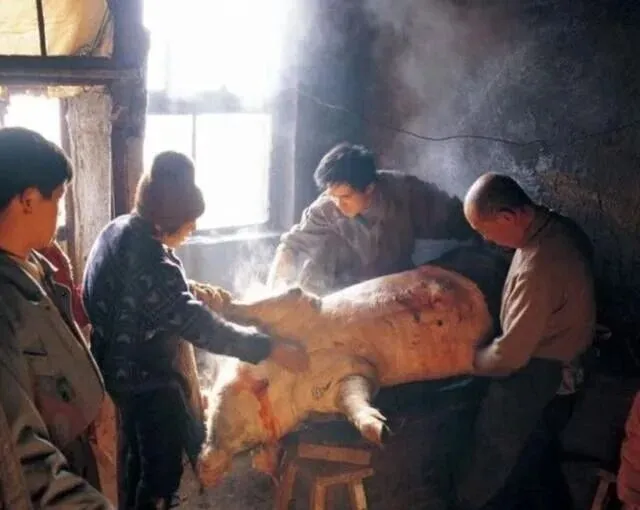 这个场景,杀年猪,以前家家必有的冬天仪式,每到年底,有头肥猪都得留着腊月杀,邻居亲戚七手八脚围上去,水一烫,毛剃得干干净净,屋里烟熏火燎,嘴里唠嗑说“今年猪油厚,明儿包饺子得多蘸点”,小孩子围在门口又是想看又是害怕,爷爷总说“赶紧离远点,别沾一身猪血”,细节全在鼻尖,香味扑面,年味就靠这头猪彻底出来了。