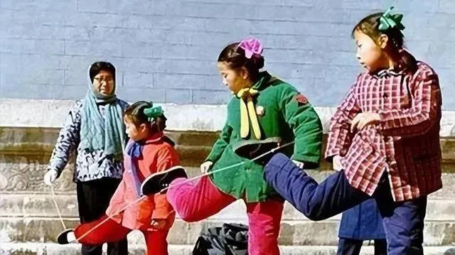 小院墙根,孩子们一字排开,跳大绳,花手绢绑头发,红围巾、绿大衣,脚上棉鞋砸得啪啪响,拽着绳头的都是手劲儿大的小子,一个往前蹦,另一个抬腿钻,老奶奶站台阶上喊“慢点,别摔着”,那会儿不怕摔,掉地上拍拍身上的雪就又接着玩,汗湿了棉袄也无所谓。