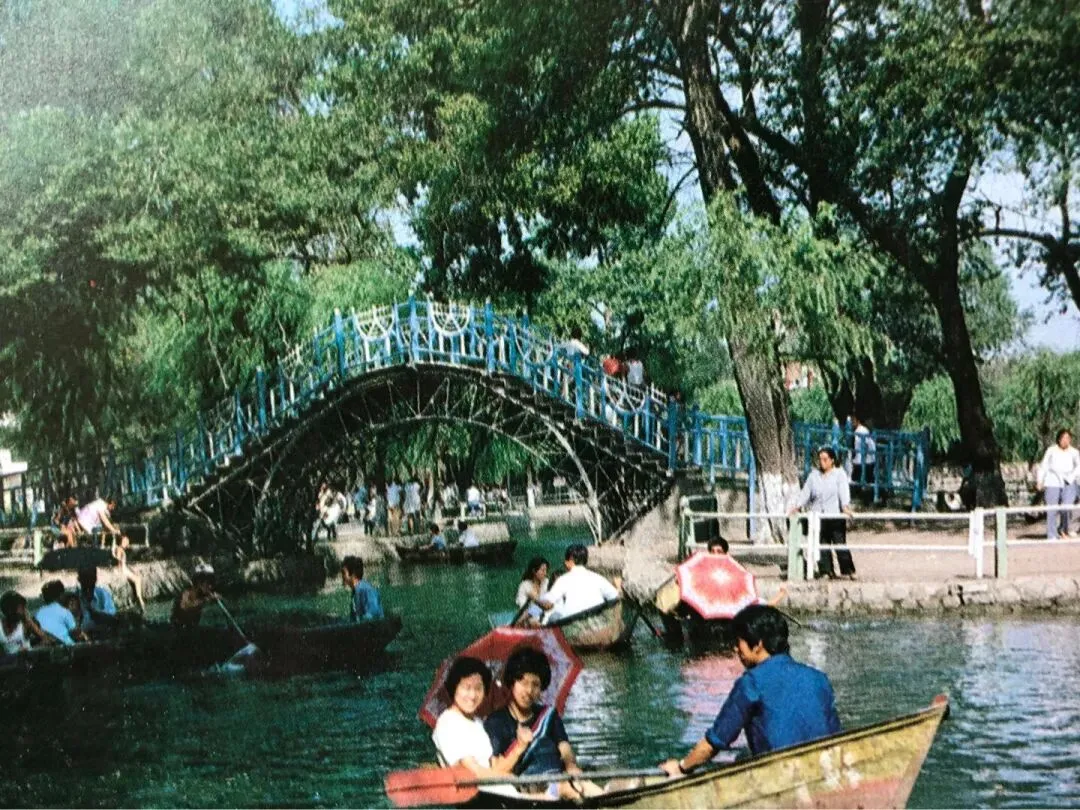 11.公园里的游客,有的打着伞,有的背着相机。那时候,人们的幸福感还是很高的。13.太阳岛的游客很多,很多人正在排队上船。当时,有首歌很流行,叫“太阳岛上”。16.一家人坐在水边的草地上休息,妈妈双手托起小孩子。19.像是工厂的宿舍楼,几个女青年正在走出来。