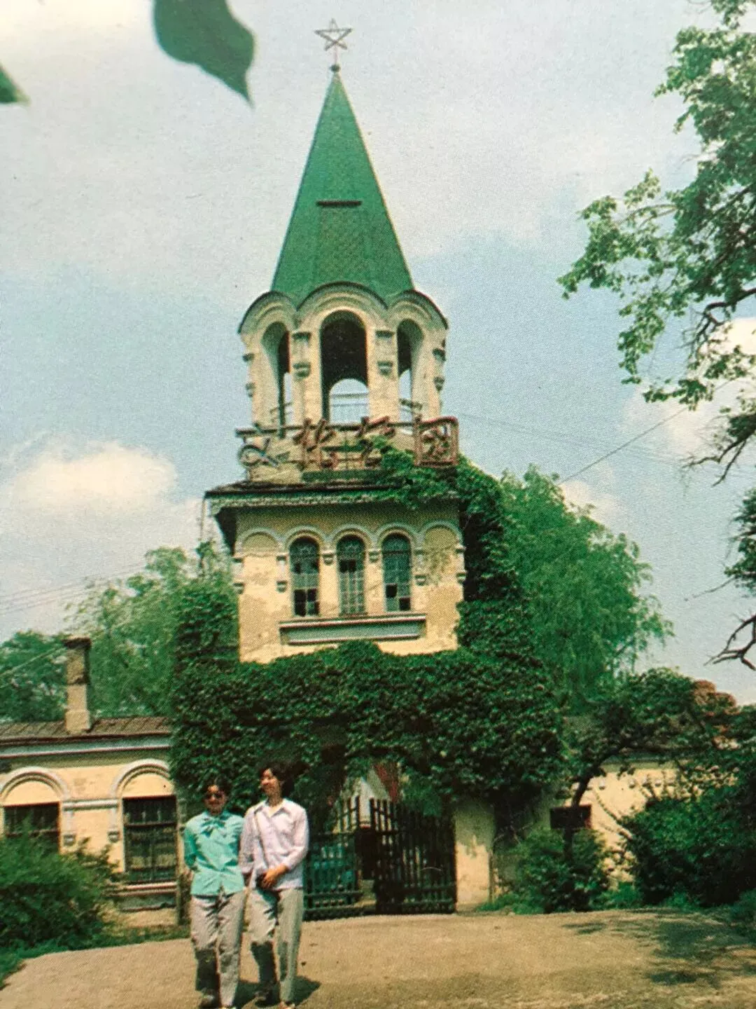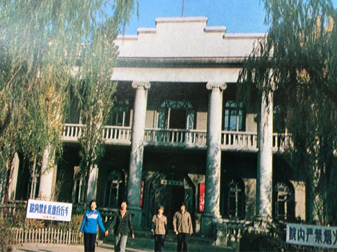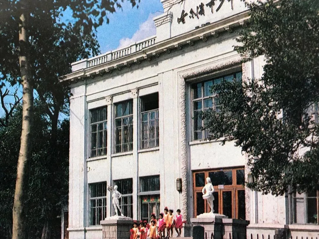 55.哈尔滨市少年宫,看到穿着表演服装的小女孩们站在台阶上。